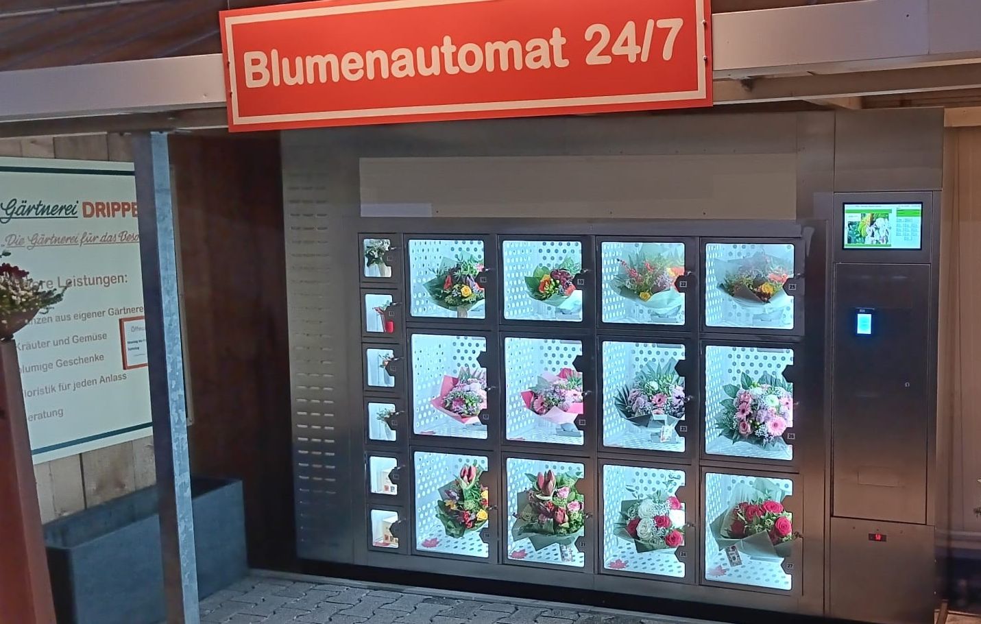 Sie benötigen einen Blumenstrauß mitten in der Nacht oder spontan am Wochenende? Unser neuer Mitarbeiter, der Blumenautomat 24/7 bedient Sie rund um die Uhr mit von uns gebundenen frischen Sträußen oder kleinen arrangierten Geschenken.