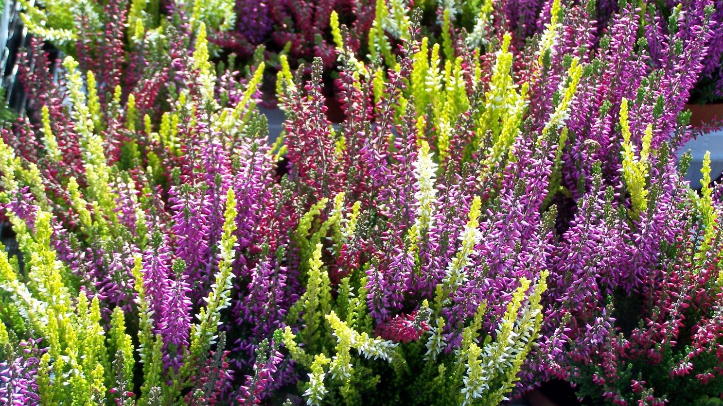 Leuchtende Spätblüher wie Astern, Chrysanthemen, Sommerheide (Callune), Alpen- und Hornveilchen prägen den Garten und die Terrasse im September und Oktober. Ein wichtiges Element sind natürlich die dekorativen Ziergräser wie das Federborstengras oder das rote Blutgras. Auch die pflegeleichten Sedumsorten haben ihren festen Platz im aktuellen Herbstprogramm. Blattschmuckstauden wie die Heuchera mit ihren farblich sehr unterschiedlichen Blättern gehören ebenfalls fest zum Sortiment.